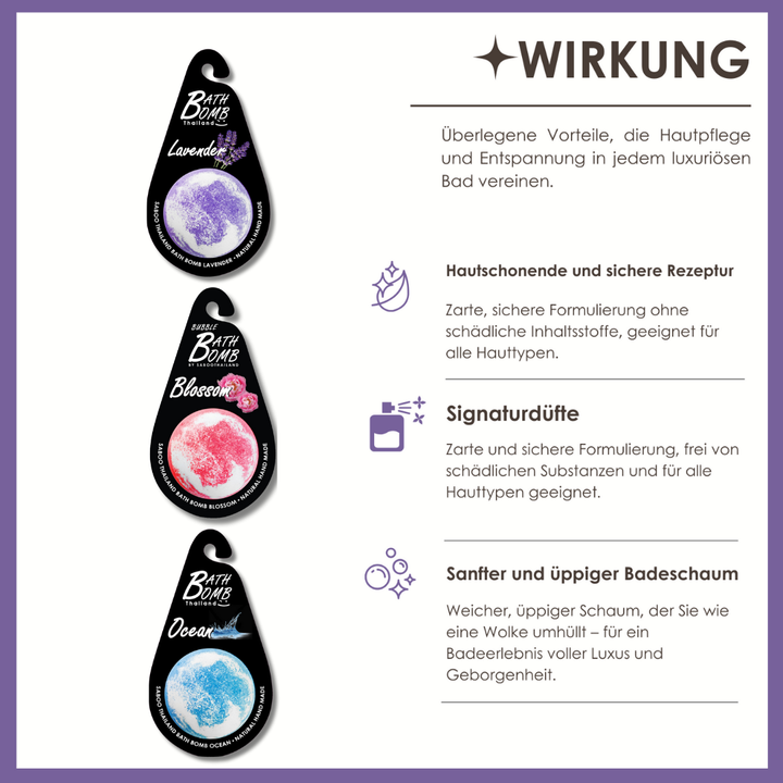 Jede Badebombe wird in einer GMP- & ISO 9001-zertifizierten Produktionsstätte hergestellt – sicher, hautfreundlich und hochwertig.