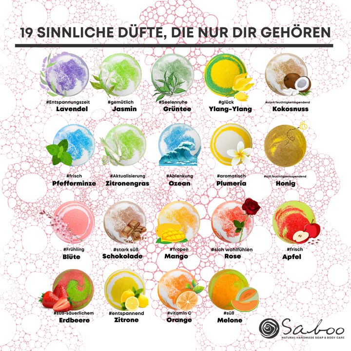 SABOO Schaumbad Bombe – Geschenkset (Ozean · Apfel · Ylang-Ylang)