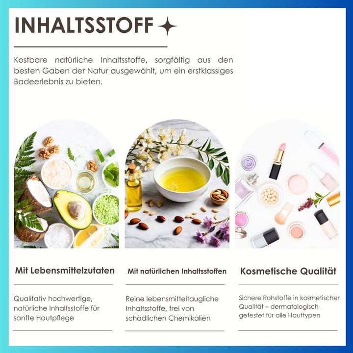Nach dem Bad bleibt die Haut langanhaltend hydratisiert, ohne Rückstände in der Badewanne – für ein sauberes, luxuriöses Badeerlebnis.