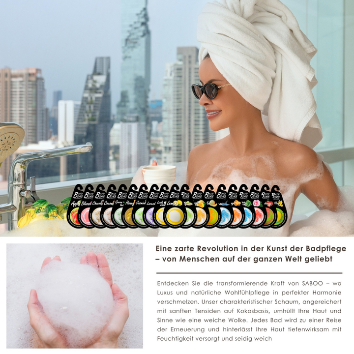 SABOO Schaumbad Bombe – Geschenkset (Zitrone · Blossom · Kokosnuss)