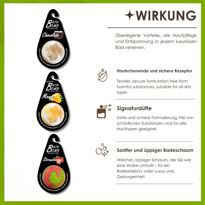 SABOO Badebomben 3er-Set – Schokolade · Mango · Erdbeere