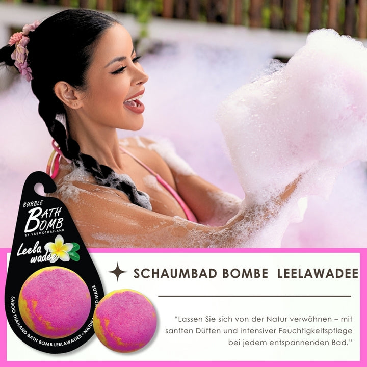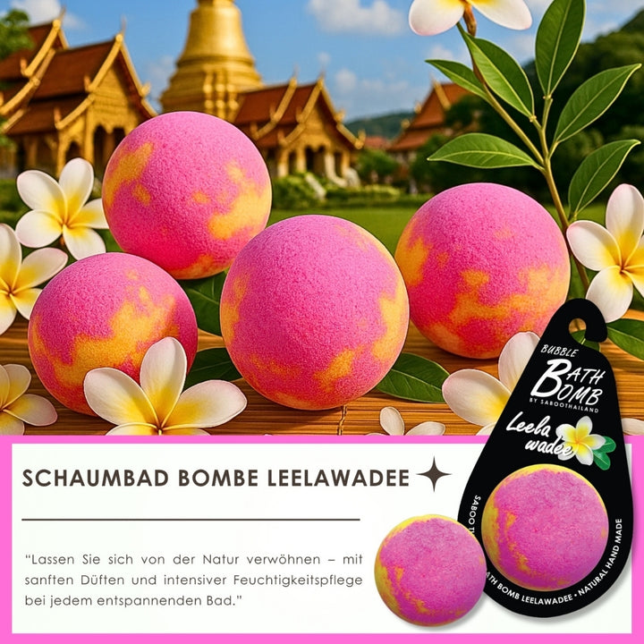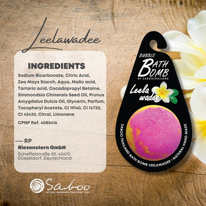 Die SABOO Badebombe Leelawadee verströmt den frischen, blumigen Duft der Plumeria,