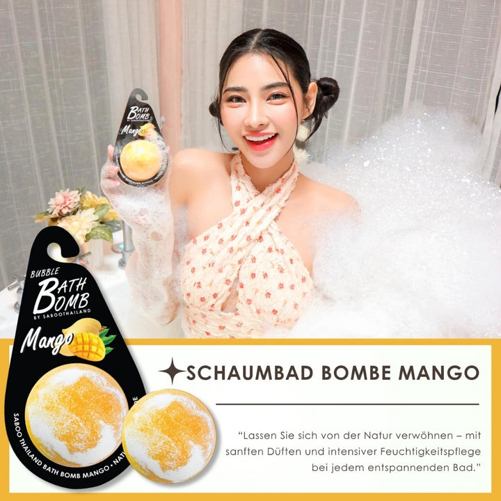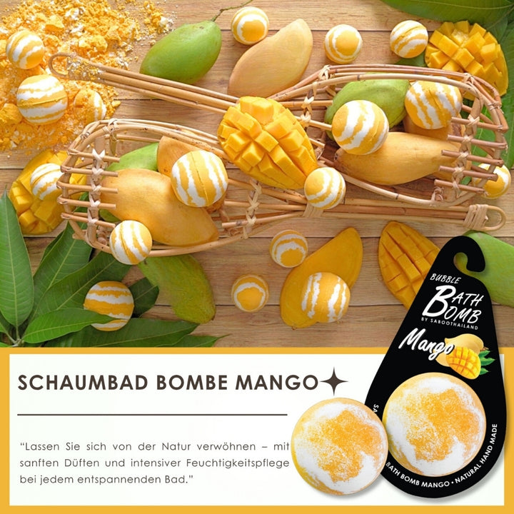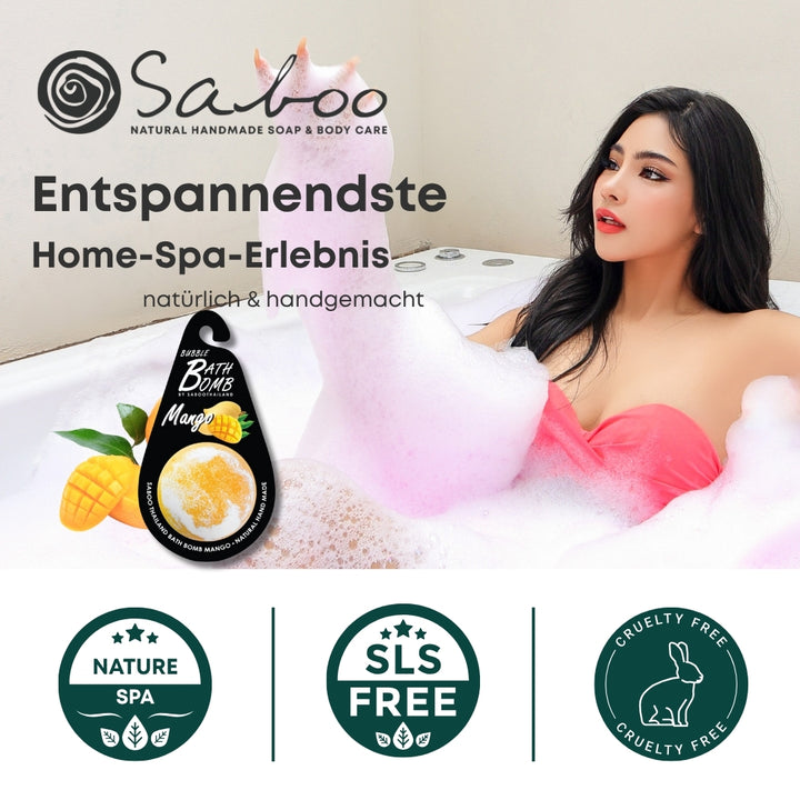 Die SABOO Badebombe Mango verströmt das fruchtig-weiche Aroma einer reifen Mango