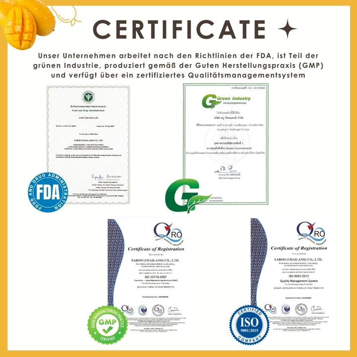 Gefertigt wird jedes Produkt in einer GMP- und ISO 9001-zertifizierten Produktionsstätte – Qualität und Sicherheit stehen für uns an erster Stelle.