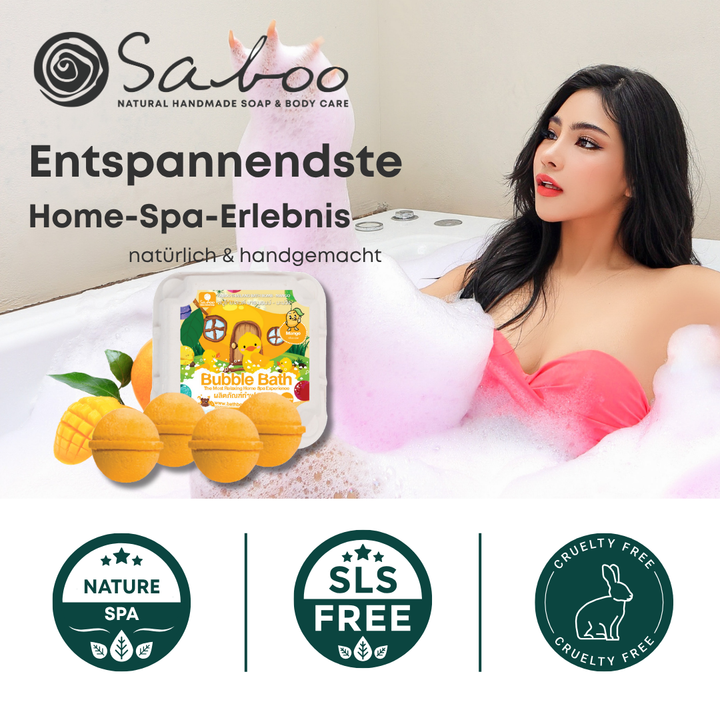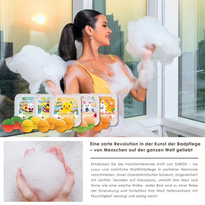 Die SABOO Badebombe ist kein gewöhnlicher Badezusatz. Sie erzeugt einen einzigartigen, extra dichten und cremigen Schaum, wie man ihn in Europa kaum kennt. Frei von SLS (Sodium Lauryl Sulfate) und SLES (Sodium Laureth Sulfate), hebt sie sich deutlich von herkömmlichen, minderwertigen Produkten ab.