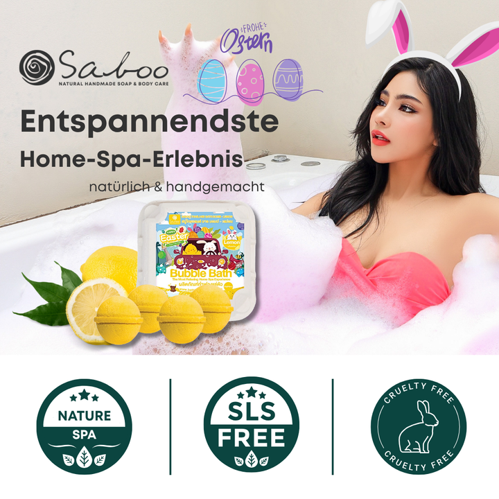 Die SABOO Badebombe ist kein gewöhnlicher Badezusatz. Sie erzeugt einen einzigartigen, extra dichten und cremigen Schaum, wie man ihn in Europa kaum kennt. Frei von SLS (Sodium Lauryl Sulfate) und SLES (Sodium Laureth Sulfate), hebt sie sich deutlich von herkömmlichen, minderwertigen Produkten ab.