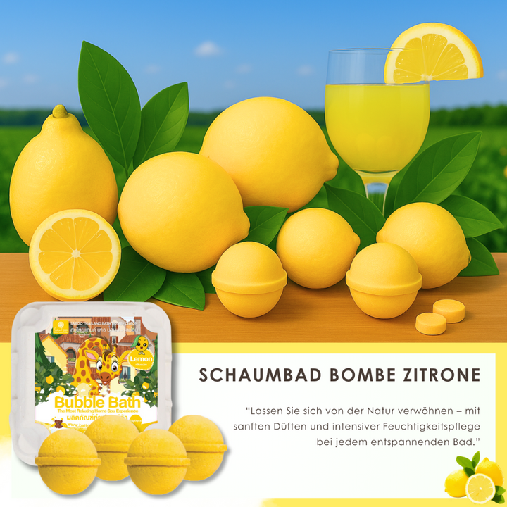Mit vier Badebomben à 35 g im gleichen Zitronenduft bietet das Set eine hygienische, praktische Anwendung. Natürliche Inhaltsstoffe pflegen die Haut sanft und spenden Feuchtigkeit. Ideal für alle, die ein leichtes und erfrischendes Badeerlebnis suchen – ob für sich selbst oder als Geschenk.