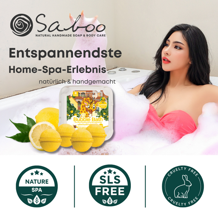 Die SABOO Badebombe ist kein gewöhnlicher Badezusatz. Sie erzeugt einen einzigartigen, extra dichten und cremigen Schaum, wie man ihn in Europa kaum kennt. Frei von SLS (Sodium Lauryl Sulfate) und SLES (Sodium Laureth Sulfate), hebt sie sich deutlich von herkömmlichen, minderwertigen Produkten ab.