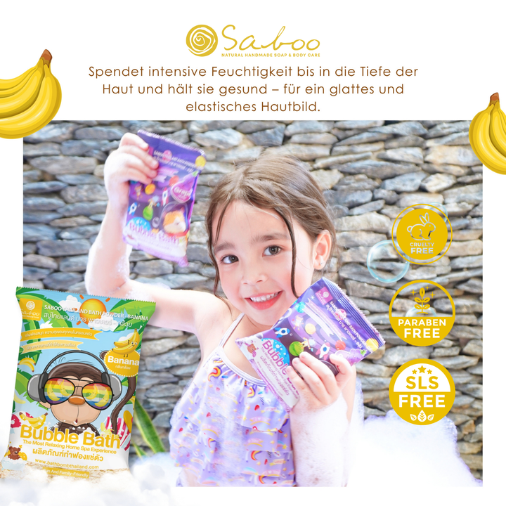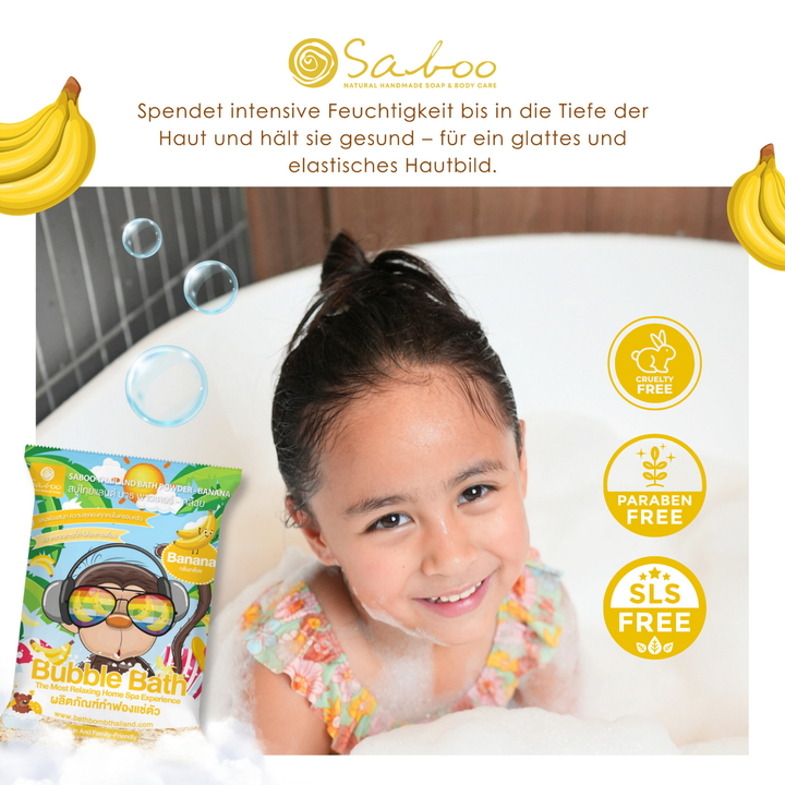 Der dezente Bananenduft wirkt beruhigend auf Kinder, und nach dem Baden bleibt die Haut lange weich und mit Feuchtigkeit versorgt. Da keine Rückstände in der Badewanne zurückbleiben, ist die Reinigung besonders einfach – ein Produkt, das auch Eltern überzeugt.